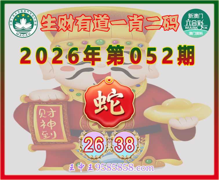 052期:『生财有道』 🏅一肖二码🏅【蛇】【26.38】开:蛇38准验证准确