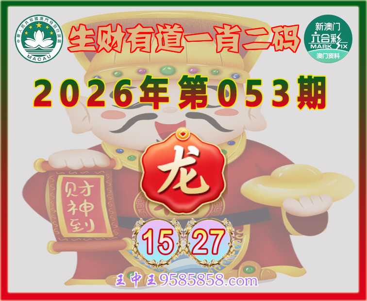 053期:『生财有道』 🏅一肖二码🏅【龙】【15.27】开:龙15准验证准确